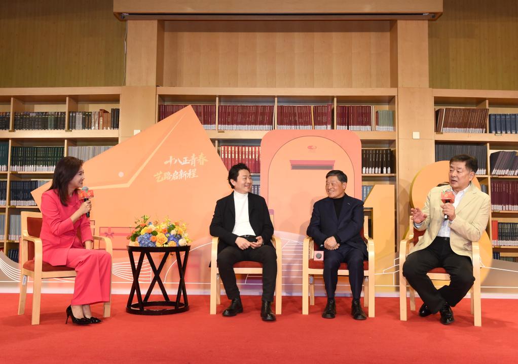 12月22日,表演艺术家濮存昕、国家大剧院原创话剧《金中都》编剧熊召政、小提琴艺术家吕思清(从右至左)在国家大剧院讲述他们与大剧院共同成长的温暖点滴。新华社记者 罗晓光 摄
