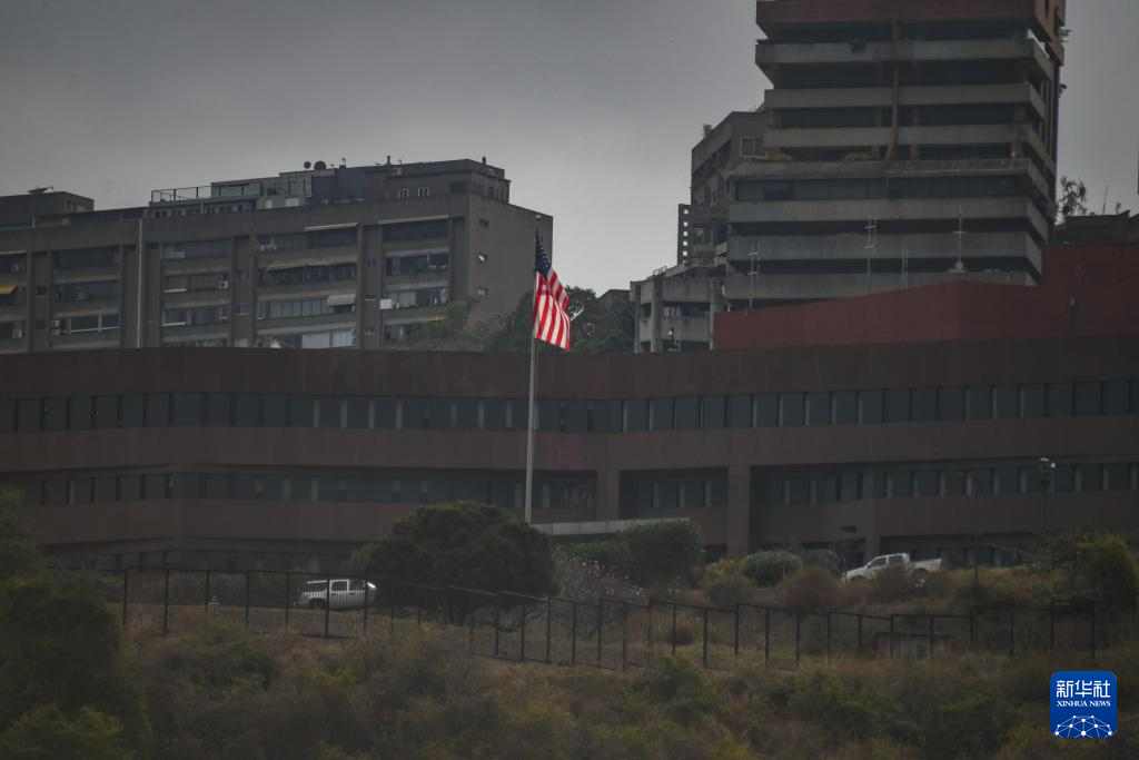 3月30日,在委内瑞拉首都加拉加斯,美国驻委大使馆升起国旗。新华社发(马科斯·萨尔加多摄)