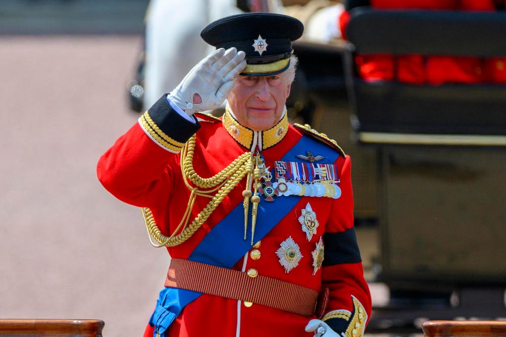 2025年6月14日,在英国伦敦,英国国王查尔斯三世参加阅兵式。新华社发(雷伊·唐摄)