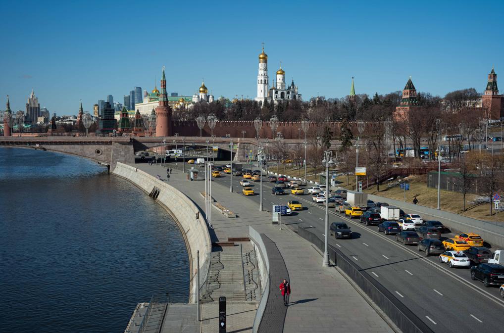 3月18日,在俄罗斯莫斯科,行人从莫斯科河边走过。新华社记者白雪骐摄