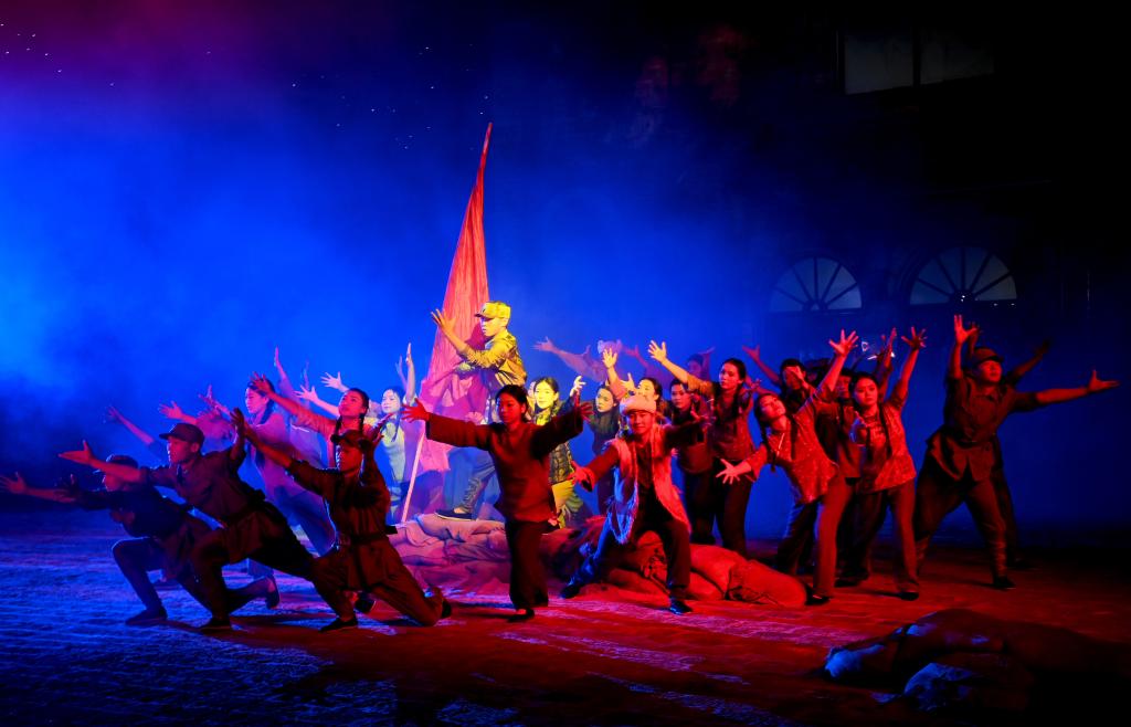 8月31日,演员在陕西延安的金延安文化旅游产业园区表演红色歌舞剧《延安十三年》。新华社记者 邹竞一 摄