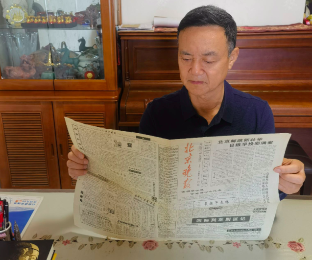 1993年10月23日的《北京晚报》刊载了《国际列车剿匪记》节选,文末署名的通讯员便是时任北京铁路公安局宣传处副处长的艾安军。如今,艾安军还保留着当年的《北京晚报》,几张略显发黄的旧报纸被他小心翼翼地折起、收好,“这些都是轰动一时的历史印记。”