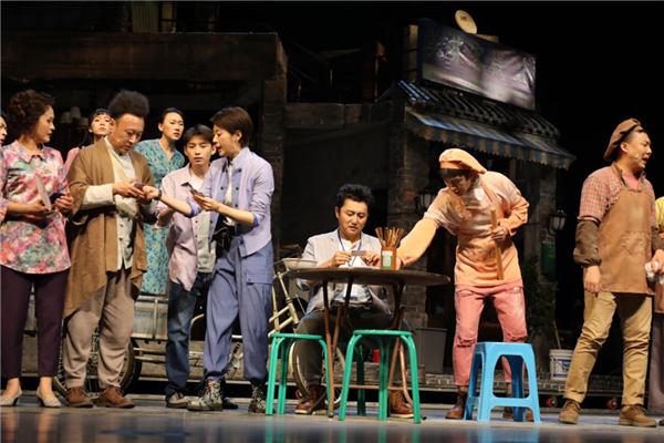 涂松岩(坐)主演话剧《人间烟火》剧照(新华社发)