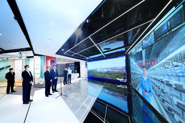 郝鹏走进中国建材总部展厅,详细了解企业基础建材、新材料、工程技术服务三大业务板块发展情况,认真察看了企业为神舟飞船、国产大飞机、白鹤滩水电站等国家重大工程提供的关键材料生产情况,视频连线企业所属安徽蚌埠中光电科技公司、浙江湖州槐坎南方水泥公司、中复西宁公司,与生产一线干部职工交流,仔细询问液晶玻璃基板、新型干法水泥、碳纤维等新材料科技攻关、生产经营情况。他指出,中国建材自2016年由两材重组成立后,坚决贯彻落实党中央、国务院决策部署,紧紧围绕主责主业,扎实推进联合重组、管理整合、资本运营、集成创新,坚持市场化改革,三项制度改革不断深化,混合所有制改革走稳走实,质量效益持续提升,在关键材料等核心技术领域取得了显著突破,充分发挥了行业产业龙头带动作用,践行了以材料创造美好世界、服务美好生活的职责使命。