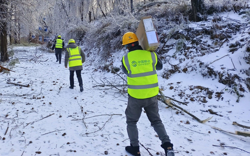在湖北宜昌,暴风雪、冻雨导致供电、通信线路故障,造成基站大面积停电退服。为尽快恢复通信畅通,中国移动湖北公司迅速启动应急预案,第一时间调集通信保障队伍、车辆及装备物资奔赴一线开展通信保障工作,并安排就近区县公司紧急驰援,跨区域增援抢修。