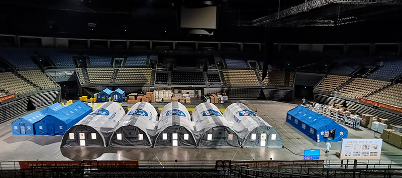 根据辽宁省大连市疫情防控需要,11月11日下午,五舱合一“猎鹰号”方舱核酸检测实验室在大连市体育中心投入使用。“猎鹰号”承担大连市下辖的庄河市、瓦房店市的全员筛查核酸标本检测工作,每日最高可检测8万管。