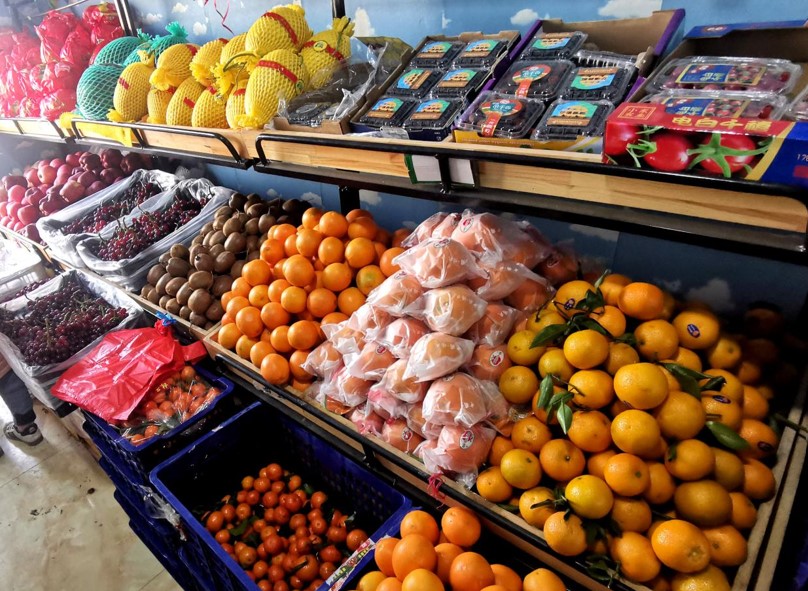 记者走访了村里的几家主要大型超市,发现这里的商品,无论是粮油米面,还是蔬菜水果等等村民们的生活必需品,琳琅满目,应有尽有。