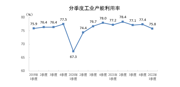 国家统计局:2022年一季度全国工业产能利用率为75.8%