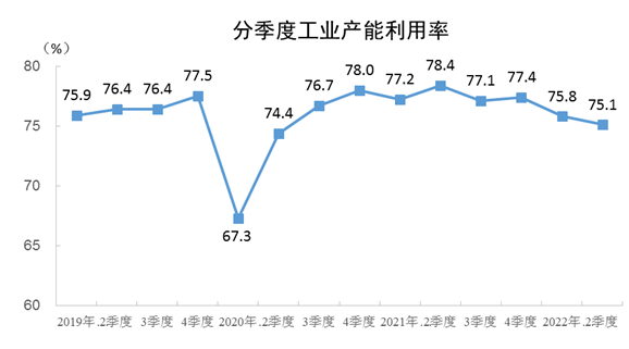 2022年二季度的全国工业产能利用率为75.1%