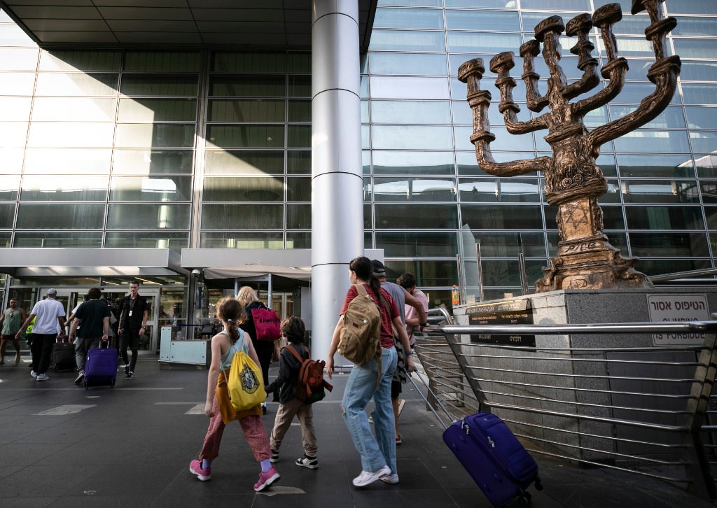 10月8日,旅客来到以色列特拉维夫附近的本-古里安国际机场准备乘机出行。(新华社记者陈君清摄)