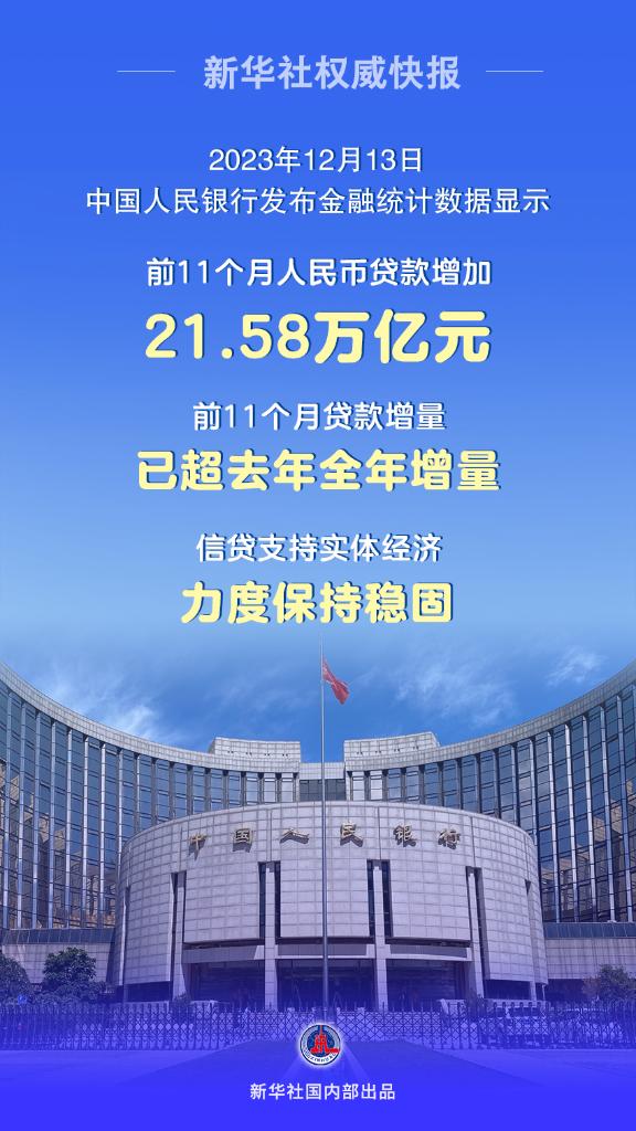 导读: 中国人民银行12月13日发布金融统计数据显示,前11个月我国人民币贷款增加21.58万亿元,前11个月贷款增量已超去年全年增量