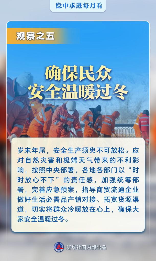 【记者观察】岁末年尾,安全生产须臾不可放松。应对自然灾害和极端天气带来的不利影响,按照中央部署,各地各部门以“时时放心不下”的责任感,加强统筹部署,完善应急预案,指导商贸流通企业做好生活必需品产销对接、拓宽货源渠道,切实将群众冷暖放在心上,确保大家安全温暖过冬。