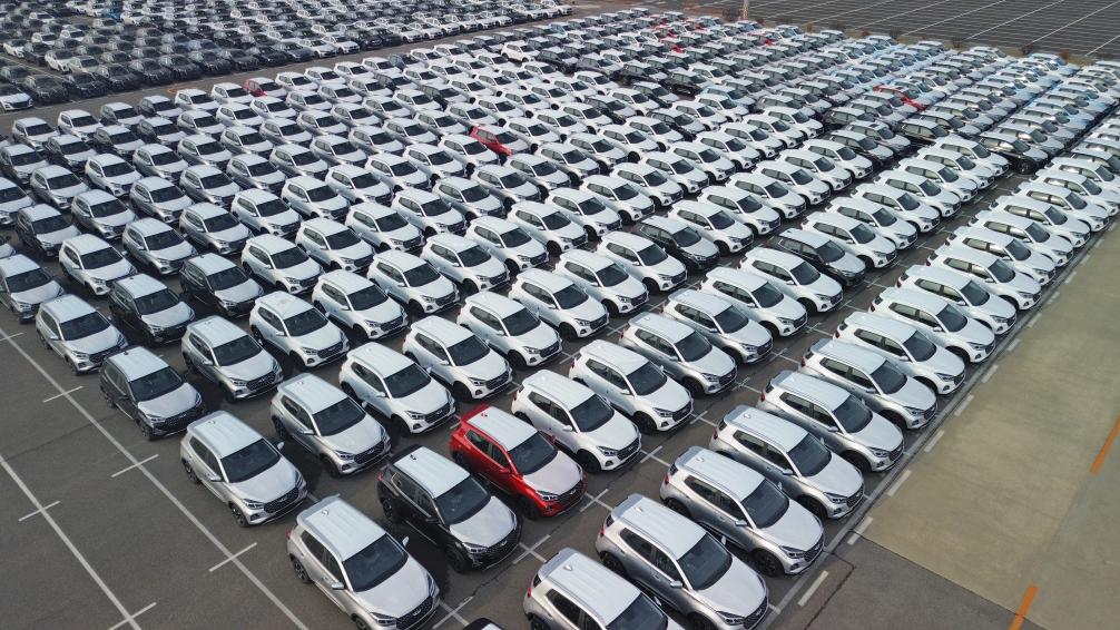 1月16日拍摄的停放在大连港大连汽车码头有限公司港口停车场的新车(无人机照片)。 新华社记者 陈为 摄