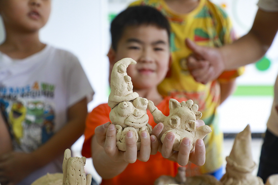 暑期,在江西省高安市第五小学操场上,暑期篮球训练课程吸引了众多孩子加入,在强身健体中充实了暑期生活。为了丰富学生暑期托管课程,该校开展了快板、排球、书法、益智游戏等多门类课程,深受学生喜爱。(《中国教育报》记者 单艺伟/摄 甘甜/文)