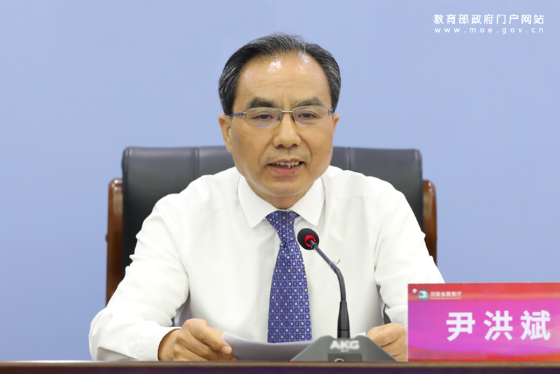 河南省委教育工作委员会专职委员吕冰出席发布会并回答记者提问。(河南教育新闻中心 赵浩男/摄)