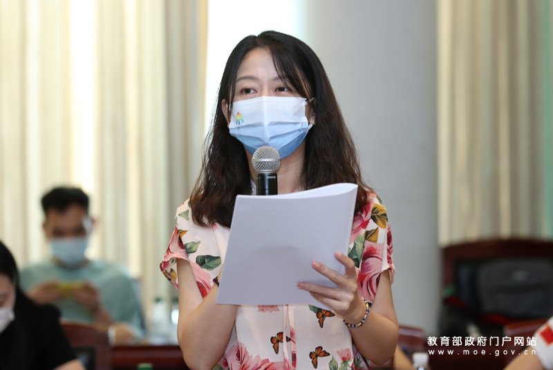 教育部新闻办主任、新闻发言人续梅主持发布会。(中国教育报记者 张劲松/摄)