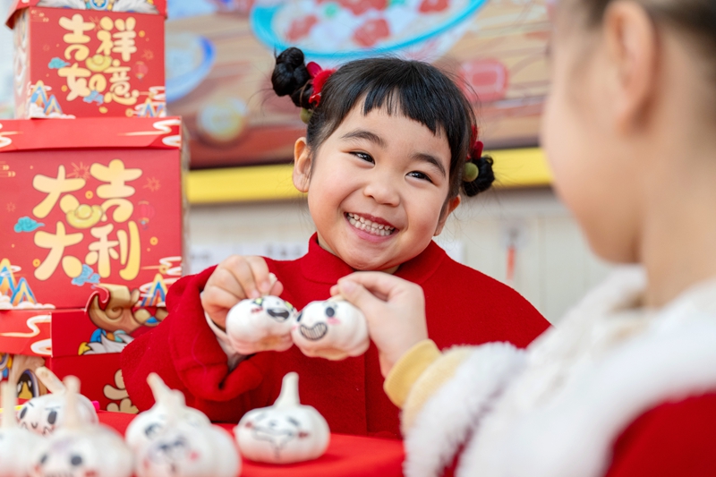 1月6日,浙江省湖州市长兴县龙山幼儿园的孩子们绘制“蒜头娃娃”。