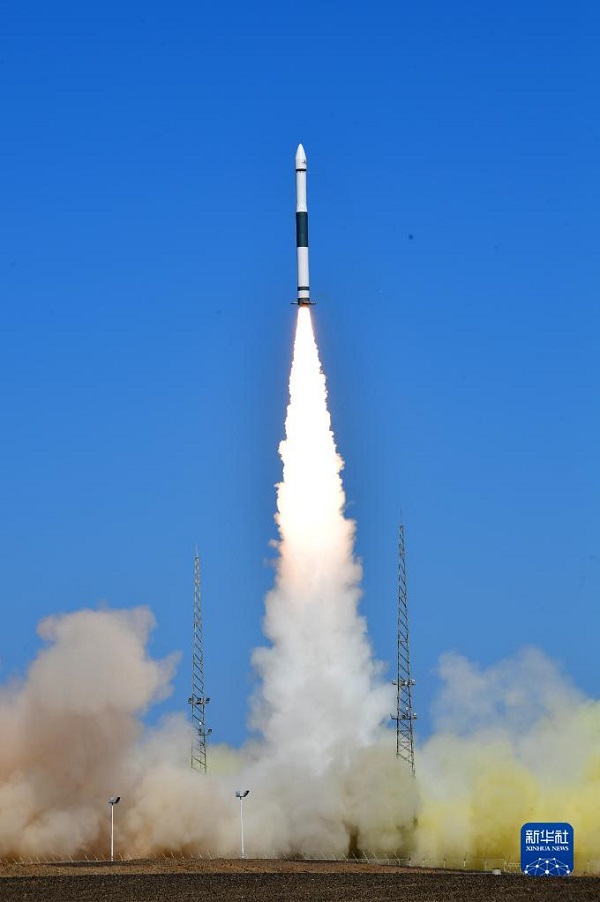 6月22日10时8分,我国在酒泉卫星发射中心使用快舟一号甲运载火箭,成功将天行一号试验卫星发射升空。卫星顺利进入预定轨道,发射任务获得圆满成功。新华社发(汪江波 摄)