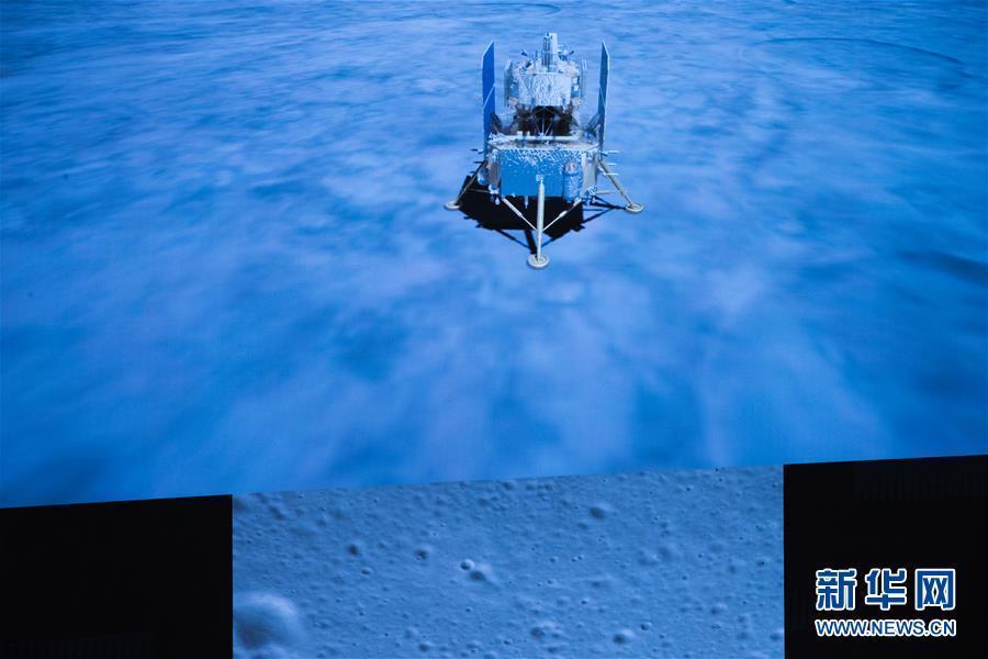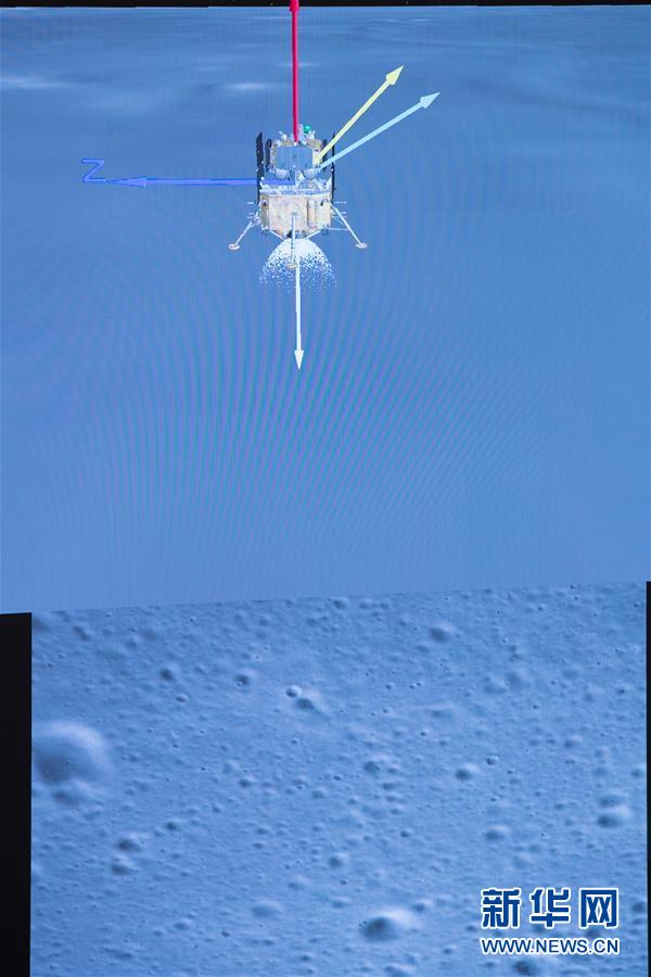 12月1日,在北京航天飞行控制中心拍摄的嫦娥五号探测器落月过程。 新华社记者 金立旺 摄