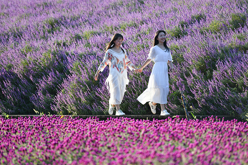 10月3日,游客在山东省枣庄市凤鸣公园粉黛花海游览。