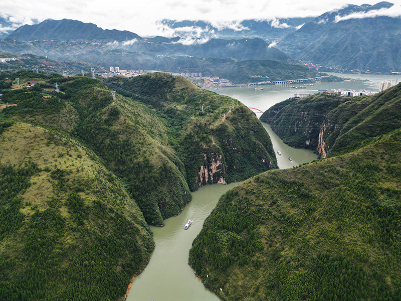 10月3日,游客乘坐游船在重庆市巫山县小三峡游览(无人机照片)。
