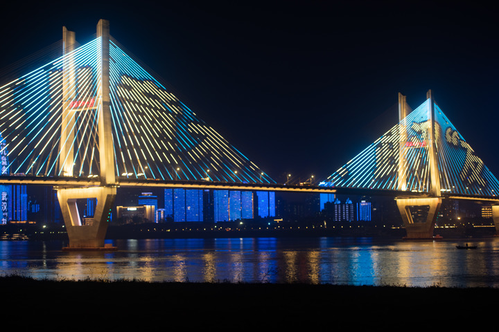 2023年11月20日,点亮儿童未来长江灯光秀在武汉长江二桥上演。