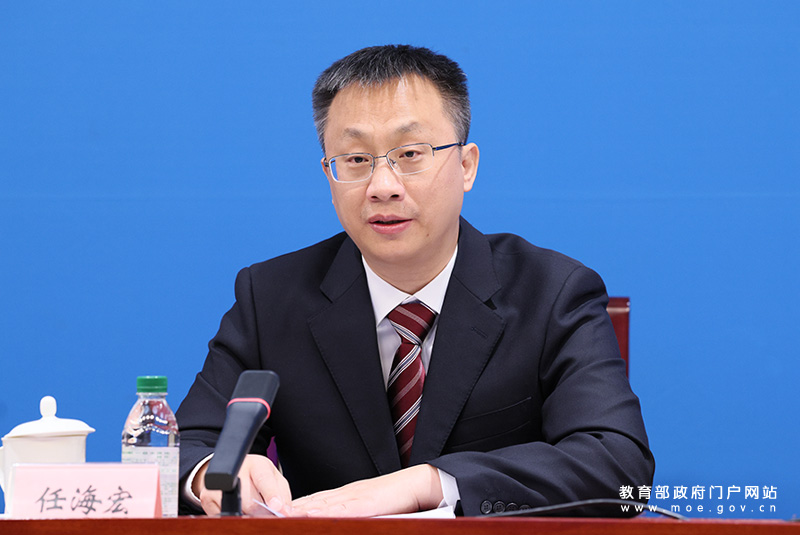 中国科协科学技术普及部副部长任海宏介绍科普资源支持中小学科技教育有关情况。(中国教育报记者 张劲松/摄)