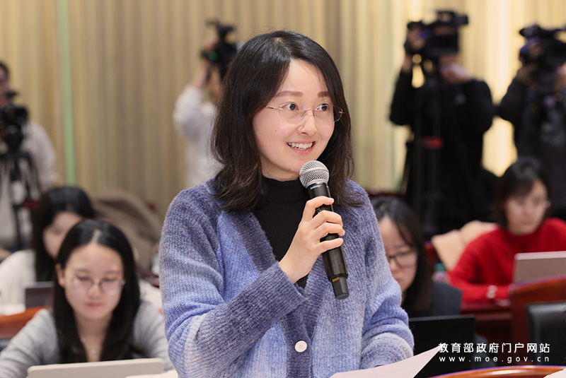 中国教育报记者提问。(中国教育报记者 张劲松/摄)