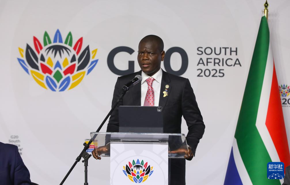 11月22日,在南非约翰内斯堡,南非国际关系与合作部长罗纳德·拉莫拉在记者会上发言。新华社记者 陈为 摄
