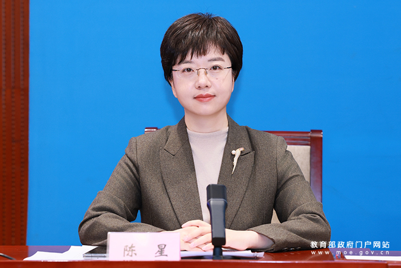 教育部办公厅副主任、新闻办主任陈星主持发布会。(中国教育报记者 张劲松/摄)
