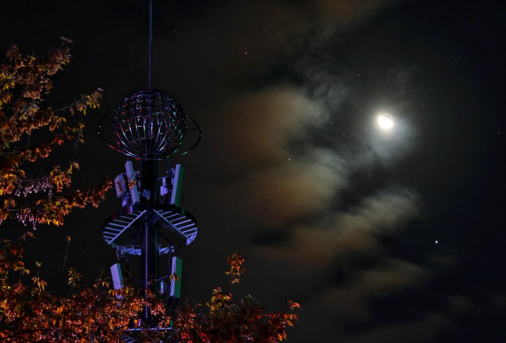 2025年10月14日凌晨在黑龙江省佳木斯市同江市拍摄的木星伴弦月。新华社发(刘万平摄)