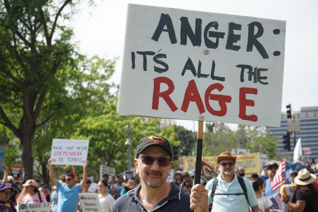 3月28日,人们在美国加利福尼亚州洛杉矶参加“不要国王”抗议活动。新华社发(曾慧摄)