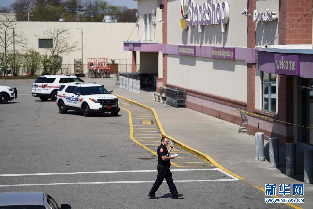 4月20日,在美国纽约州长岛地区西亨普斯特德,警察在发生枪击事件的连锁超市外警戒。新华社记者王迎摄