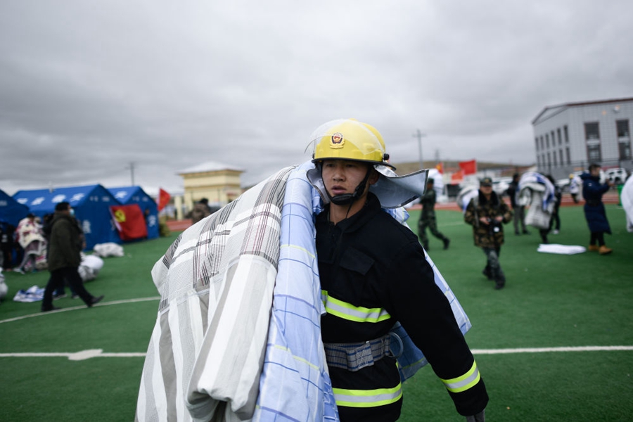 这是抗震救灾一线的温暖一幕。地震发生后,各方救援力量坚持“人民至上”“生命至上”,全力做好人员搜救、群众安置等工作,大批帐篷、棉被等救灾物资运抵灾区,受灾群众第一时间实现有临时住所、有饭吃、有衣穿、有水喝、有医疗服务、有安全感、有卫生防疫举措的“七有”。