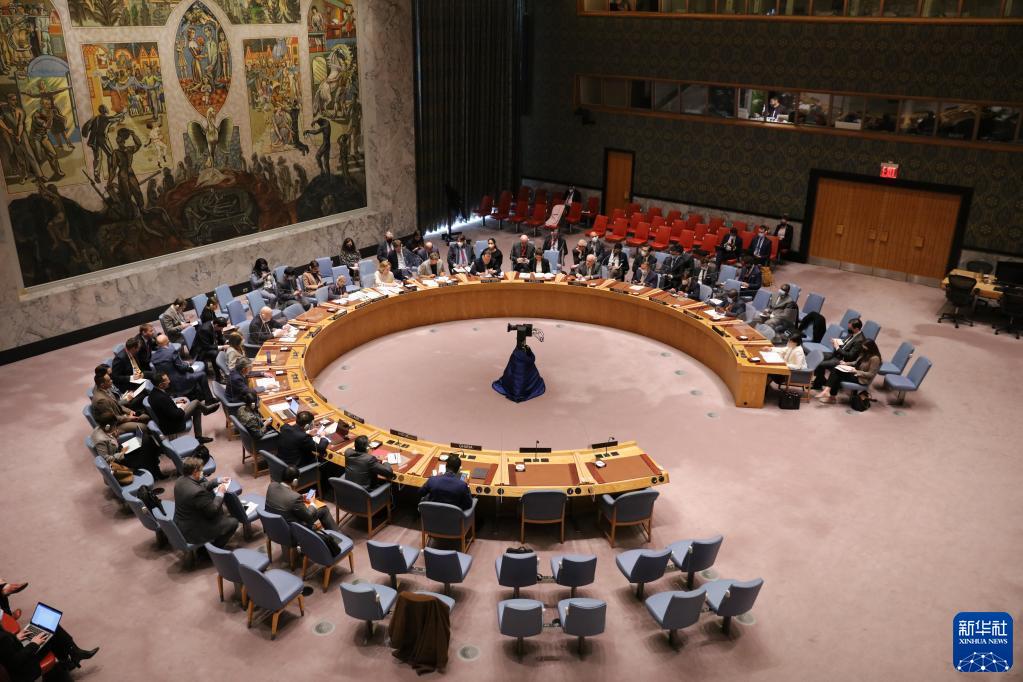 3月18日,在位于纽约的联合国总部,联合国安理会召开会议,审议乌克兰生物安全问题。新华社记者 谢锷 摄