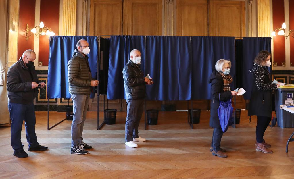 4月10日,选民在法国巴黎郊区的克里希市一家投票站投票。(新华社记者高静摄)