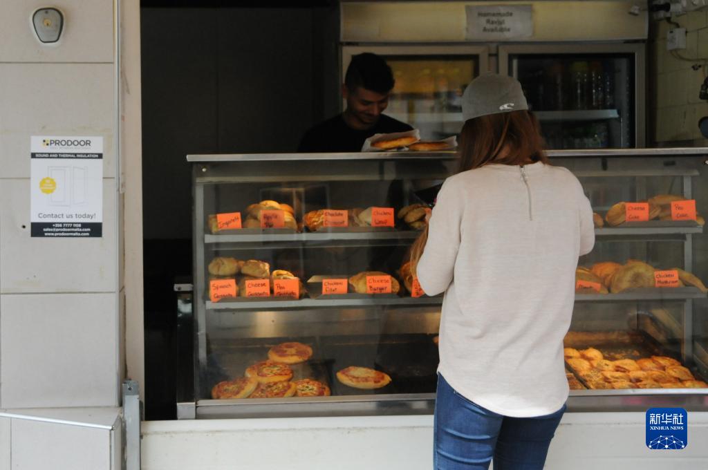4月29日,顾客在马耳他姆西达一家传统美食酥皮馅饼店购物。新华社记者 陈文仙 摄