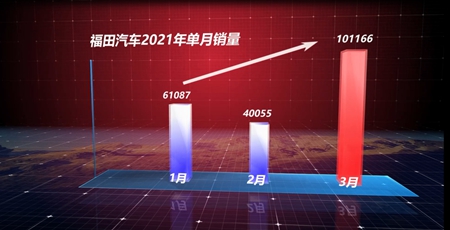 3月福田汽车销售数据显示,继1~2月连续冲高,福田汽车3月销量再现爆发式增长,当月销量大破10万辆大关,回款达129亿元,刷新了同期销量及回款最高历史纪录,创福田汽车25年业绩最高纪录,公司各项经营指标快速向上攀升。