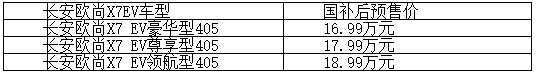 长安欧尚首款智能纯电SUV——长安欧尚X7EV,为一线限购城市用户而来,此次共发布三款车型,预售价16.99-18.99万元。