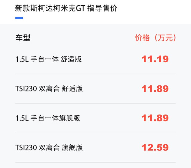 售价11.19万元起,新款斯柯达柯米克GT正式上市