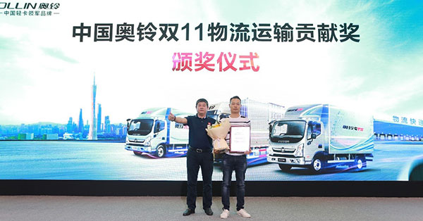 中国奥铃向快递小哥致敬,颁发双十一物流运输贡献奖