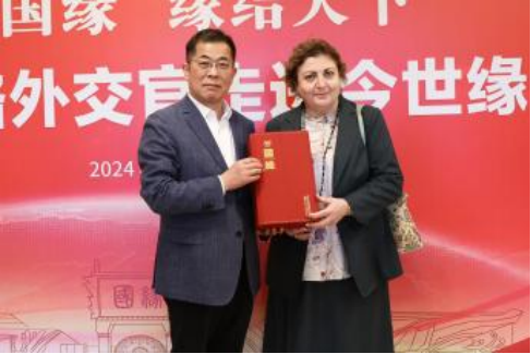 作为中国文化的独特印记,酒承载着深厚的文化底蕴,是东西方文化交流与互鉴的重要桥梁和纽带。在欢迎仪式上,顾祥悦代表今世缘酒业,向驻华外交官们赠送象征美好友谊的国缘V9、国缘四开,展现美好情谊,并合影留念,为这份缘分注入了更多的醇厚与温度。