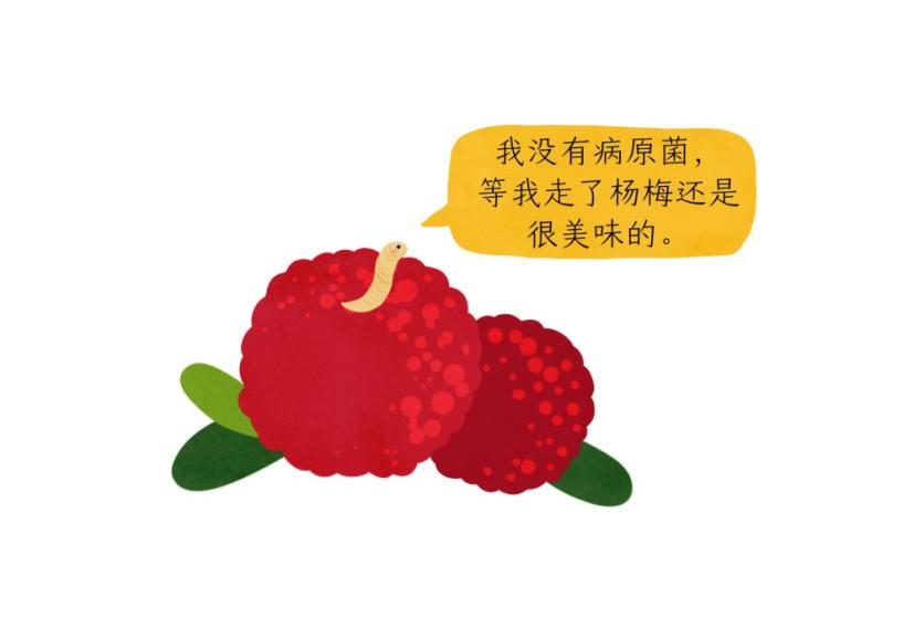 专家介绍,杨梅上的小虫子是果蝇幼虫,杨梅肉柱破损后会流出红色汁液,这些汁液散发的气味会吸引果蝇在其表面上产卵。果蝇幼虫与家蝇幼虫虽然同属双翅目害虫,但差别很大。
