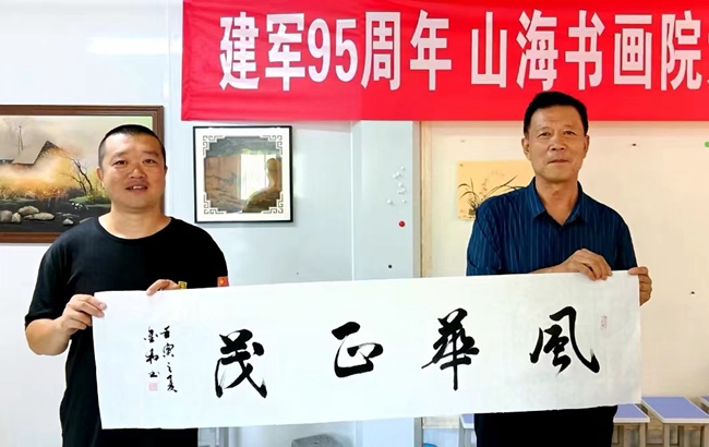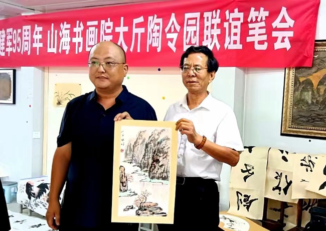 本网北京7月29日讯(孟淑敏 徐浩钦)为庆祝中国人民解放军建军95周年,喜迎党的二十大召开,河北山海书画院与大斤陶令园今日联合进行书画联谊笔会,为退伍军人及奋斗在第一线的部队官兵们献礼活动!