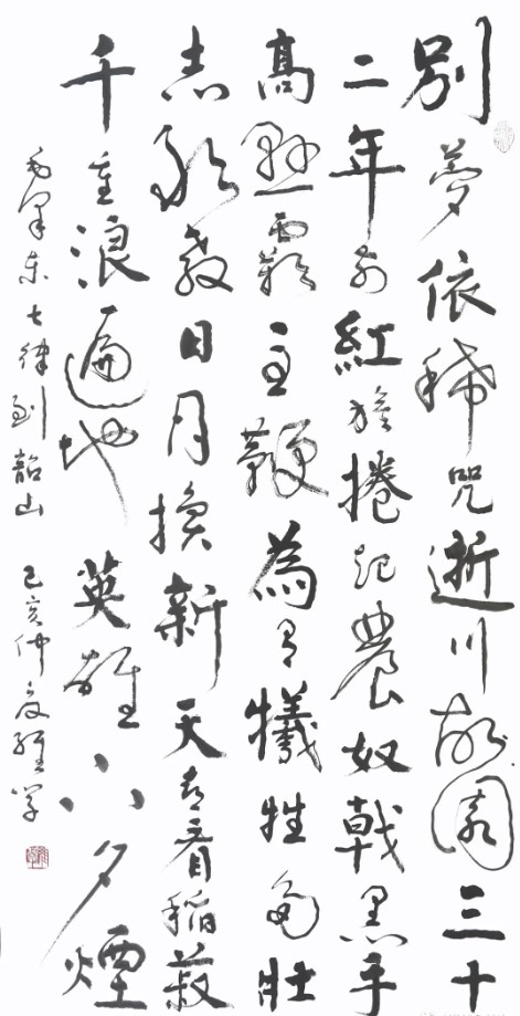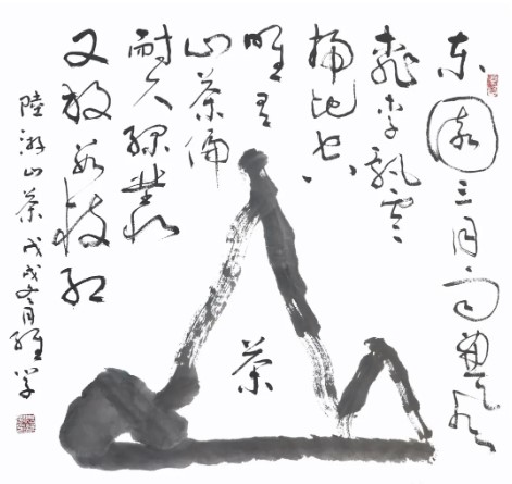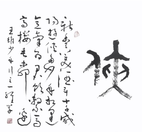 他还偶用变体创作。所谓变体,即以草体为基调,掺以篆、隶、楷、行诸体创作一幅作品。