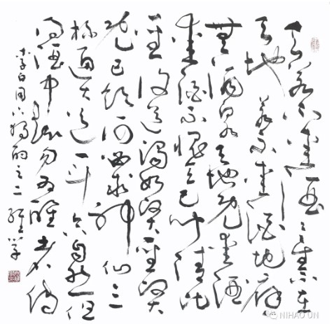 书法是线条的艺术。袁维学书法作品的线条很有力度、质感。结体平稳之中不乏霸气。墨色变化多端,浓、淡、枯、润皆出于自然。笔中有墨,墨中有笔。整幅作品风神洒落、血脉连贯、云烟飘动、节奏鲜明、全章贯气。一位行家赋诗赞道:线条粗细无始末,大起大落不做作。墨色浓淡浑一体,满纸龙蛇舞婆娑。
