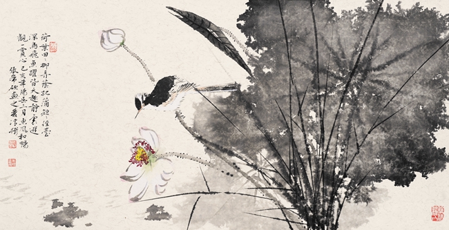 通过仔细品读希硕的花鸟画作品我们就会发现,他在追求“意境”的同时,更多追求“诗境”的创意。真正彰显了“大漠孤烟直,长河落日圆”的荡气回肠和“清水出芙蓉,天然去雕饰”的清新隽永。