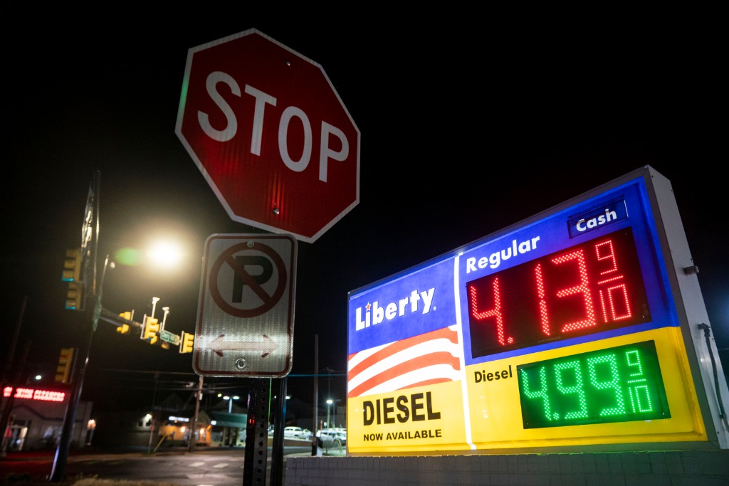 这是3月31日在美国弗吉尼亚州阿灵顿拍摄的一处加油站的油价显示牌。新华社记者刘杰摄