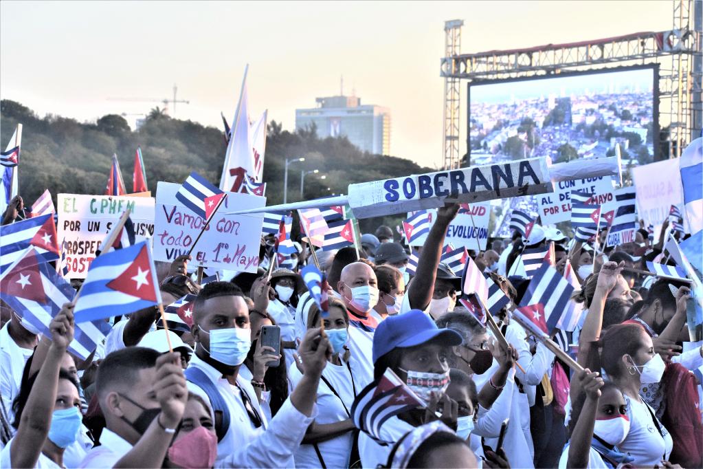 5月1日,古巴民众在哈瓦那参加“五一”国际劳动节集会游行,反对美国对古封锁,表达爱国情感。新华社记者朱婉君摄