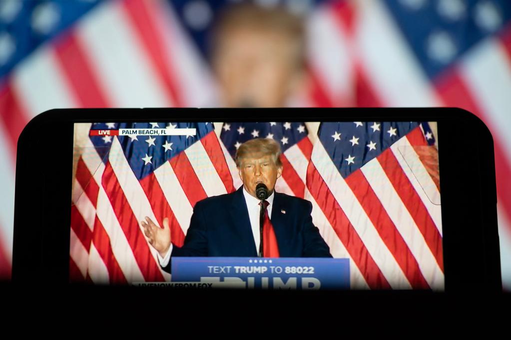 美国前总统特朗普2022年11月15日晚宣布将再次争夺白宫之位,并正式启动2024年总统竞选活动。新华社记者 刘杰 摄